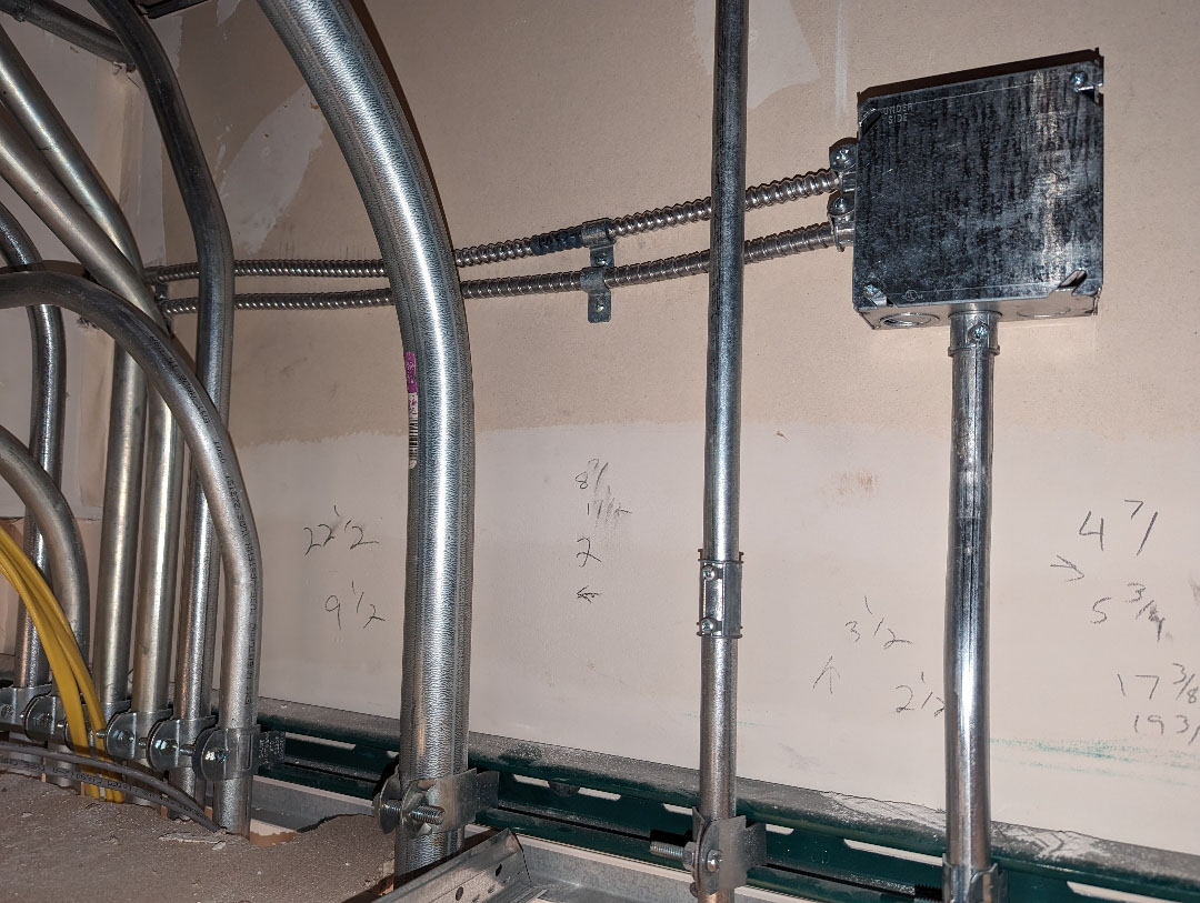Much of the work on these build-outs happens behind the scenes, with new circuits, careful conduit runs, and wiring hidden within ceilings and walls. These steps are essential for powering every fixture, outlet, and device safely and efficiently.